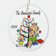 A pretty round ceramic keepsake Christmas holiday ornament features a stick figure family including a dad, mom, girl, toddler boy, and baby boy in front of a decorated Christmas tree with areas you can customize with your family name and the current year! This cute holiday keepsake ornament makes a great gift for the young family to commemorate a special year!