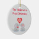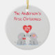 Celebrate your union with this "Couple's first Christmas" ornament. This ornament features a silver customizable background on the front with two baby elephants in an affectionate pose. In the centre is a heart that states "I love you 2". The back of the ornament is red and customizable.