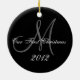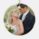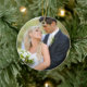 Beautiful, Simple Couple's First Christmas Ornament with Photo on front and monogram initial on the back. Elke Clarke©. For newlyweds and parents of newly married couples as a keepsake of your wedding day. White snowflakes and and opaque band along with your wedding photo make up this stylish design. For more editing options, including making your photo fit and changing the background colours select "customize it" for the edit menu.