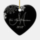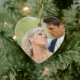 Heart-shaped Christmas Ornament. Simple Couple's First Christmas Ornament with Photo on front and monogram initial on the back with white snowflakes. Elke Clarke©. For newlyweds and parents of newly married couples as a keepsake of your wedding day. White snowflakes and and opaque band along with your wedding photo make up this stylish design. For more editing options, including making your photo fit and changing the background colours select "customize it" for the edit menu.