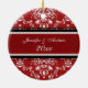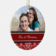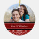 Couples 1st christmas photo ornament customizable with your own photo, names and date in elegant red, black and white classic floral damask pattern. A stylish way to decorate your christmas tree or home for the holidays. The perfect way to remember your first christmas together as a couple.