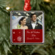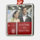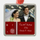 Couples 1st christmas photo ornament customizable with your own photo, names and date in elegant red and white with festive snowflakes pattern. A stylish way to decorate your christmas tree or home for the holidays. The perfect way to remember your first christmas together as a couple.