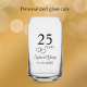 Create a stylish unique custom wedding anniversary keepsake by adding the couple's names and anniversary date to this can glass. My original designed intertwined hearts accent the modern simple script "25 Years". Personalize this elegant glass with the couple's names written in elegant calligraphy typography. Add the 25th wedding anniversary date for a commemorative glass. You can also change the number for a custom 5th anniversary, or 10th wedding anniversary, 50th or 60th or any anniversary if you need. This would be a lovely silver 25th wedding anniversary gift or couple's keepsake commemorative glass, or a great party favor for guests of a 25th wedding anniversary party. See my collection for matching wedding anniversary table decor and wedding glassware.