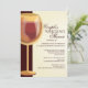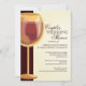 A golden wineglass of a red wine makes a perfect design for a wine-themed co-ed couples wedding shower. When the couple loves wine, or if the shower or wedding is at a winery or vineyard, this elegant design will set the stage for your wonderful event. The wine glass is given a frosted effect in rich tones of gold and brown and the background has an aged off-white textured look that adds dimension to the overall look. Offered here on the basic paper stock, this design would also look great on linen or felt.