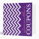 Personalized purple and white chevron pattern coupon binder. Custom coupon book with personalizable name, zig zag pattern print and elegant label. Cute personalized couponing gift idea for men women and kids. Create your own for coupon queen wife, couponer husband, dad, mom, mother, aunt, sister, grandma, daughter etc. Stylish zigzag stripe couponbook, inserts not included. Custom grocery coupon holder for your coupon code collection. Save money on good deals and discount offerings. Big large thick folder with trendy print. Pretty DIY coupon organizer design with classy script calligraphy typography in coral pink colour. Also makes a beautiful recipe saver cook book for kitchen. Just change the wording. Customizable background colour.