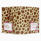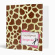 A coupon organizer featuring a giraffe print background covering entire outside surface. Personalize the front with your name on pink and white coupon design and scissors illustration. Personalize the back with "If Found" information.