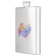 The product is a good size and came exactly as it was pictured. The lid is not attached to the flask, which could be dangerous on drunken nights... The print came out surprisingly well and looks very sharp. Would definitely recommend.