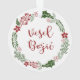 Ornement de vacances acrylique. Vesel Božič, en slovène : Joyeux Noël, design de couronne de Noël vert et rouge