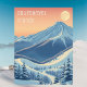 Snowy mountains of Courchevel, France, in Europe! We hope you're having a wonderful ski vacation. This postcard features a gorgeous blue-grey mountain landscape In front of a yellow orange sky.