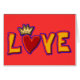 Parole d'amour rouge avec une couronne dans la lettre coeur "o"