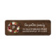 Étiquettes d'adresse de retour personnalisées avec votre monogramme de famille, votre nom et votre adresse. Le design présente une couronne de fleurs et de plumes aquarelles bohèmes dans des couleurs automnales rustiques sur un fond imitation grain de bois. Utilisez les outils de conception pour changer la couleur de fond et les polices pour personnaliser davantage votre propre design unique. Parfait pour un mariage automnal, une baby shower, des invitations de Thanksgiving ou simplement pour rendre votre courrier un peu plus festif cet automne !