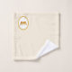 Élégante serviette sertie d'une belle couronne dorée et rouge sur un arrière - plan beige de sable. Chic et moderne serviette de bain.