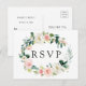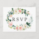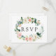 Élégante carte de réponse de mariage avec une couronne de fleurs aquarellées rose et blanc avec feuillage vert. Pour une personnalisation avancée de ce design, veuillez cliquer sur le bouton "Personnaliser". Des articles assortis sont également disponibles.