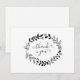 Caractérisé par une élégante couronne florale noire et blanche avec calligraphie manuscrite. Vous pouvez personnaliser avec votre propre message de remerciement au verso ou si vous préférez ajouter votre propre message manuscrit, supprimez le texte. Un moyen parfait de dire merci !