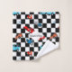 Ce design amusant, mignon et moderne est parfait pour les enfants et les adolescents qui aiment la course et les voitures, le design comprend un modèle carré noir et blanc avec différents types de véhicules motifs, ajouter initial / monogramme et nom ou texte court.