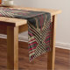 Un chemin de table sophistiqué de style Art Déco avec des motifs géométriques orne une table en bois clair, ajoutant une touche d'élégance à la décoration de mariage. Les teintes riches et le design complexe mettent en valeur le thème luxueux de la célébration.
