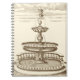 An ornamental cherub tops this decorative courtyard fountain. Water spills out, collecting in the individual pools of the fountain. A peaceful picture that would look amazing in any home!