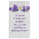 Cousin quote with purple and white polka dot ribbon and cosmos flower on light grey rustic barn wood.