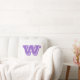 Coussin en blanc/violet avec la grande lettre "W". Customisez cet objet ou achetez tel quel.