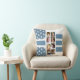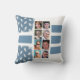 16 photo collage double face lancer oreiller / coussin Ajouter 8 photos sur l'avant et un autre 8 sur l'arrière. Blanc et bleu avec feuille et rayures.