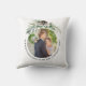 Coussin 1ère photo de Noël de jeunes mariés blanc vert