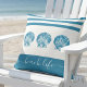 Coussin 3 turquoise bleu coquillages plage vie script mode