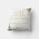 This elegant botanical greenery floral 50th wedding anniversary throw pillow keepsake gift can be personalized with the names and special dates of the happy couple and photo on the reverse. Designed by Thisisnotme©