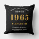 Un design personnalisé classique de lancer oreiller pour cette célébration d'anniversaire pour une personne spéciale née en 1965. Ajoutez le nom à ce design vintage de style rétro noir, blanc et or pour un cadeau d'anniversaire personnalisé. Modifiez facilement le nom et l'année avec le modèle fourni. Un merveilleux cadeau d'anniversaire personnalisé. Plus de cadeaux et de fournitures de fête pour cette fête disponibles dans le magasin.