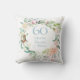Doté d'une délicate guirlande florale d'aquarelle, ce coussin botanique chic 60e anniversaire mariage peut être personnalisé avec vos informations spéciales d'anniversaire dans un élégant texte bleu diamant. Conçu par Thisisnotme©
