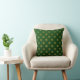 Coussin vert foncé avec motif de flocon doré. Un ajout simple mais élégant à votre décor hivernal.