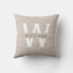 Coussin fait sur commande minimal et moderne, simple pourtant à la mode de monogramme de famille dans un regard de toile rustique chic. Personnalisez avec votre propres initiale et nom de famille.