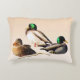 Ce coussin d'accents présente un rendu artistique de trois Canards colverts perchés sur un arrière - plan de dégradé orange pâle. Les canards mâles peuvent être identifiés par leur tête verte irisée et leur bec jaune. Les femelles ont de jolies plumes dans les tons brun et or avec des becs orange. L'image est répétée à l'arrière.