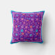 Un joli coussin à jets fleuris ou épars, avec un motif de fleurs vives en violet, turquoise, rose et orange sur un arrière - plan violet d'un collage de papier peint à la main par Judy Adamson. Vous pouvez facilement modifier la couleur de l'arrière - plan à l'aide du bouton Modifier.