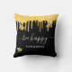 Décoré d'abeilles souriantes et joyeuses. Un arrière - plan noir chic. Décoré avec des gouttes de parties scintillant en faux or. Script en lettres blanches avec swashes et texte : Bee Happy. Personnalisez et ajoutez votre nom.