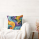 This abstract swirl throw pillow features flowing wave forms inspired by mid-century modern art and retro color theory. The design blends deep teal, ocean blue, golden yellow, burnt orange, olive green, and rich purple into a dynamic composition full of movement and rhythm.