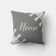 Accueil oreiller à lancer gris et argent. Le texte d'accueil peut être customisé.