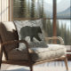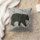 Coussin de signe bienvenu pour votre cabine de famille, loge ou résidence secondaire de fuite de montagne. Personnalisez le message ou supprimez le texte pour une version vide. Perfectionnez pour un thème sophistiqué de décor de maison de loge. Cette conception était peinte à la main en acryliques sur la toile par Audrey Jeanne Roberts. Comporte un chevron de motif d'écorce de bouleau avec un ours en bois de silhouette de grain de brun foncé. "Loge de forêt de bouleau," copyright, tous droits réservés.