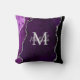 Ce coussin est décoré d'un élégant et glamour arrière - plan en marbre d'agate avec des détails de gemme de géode et des accents de parties scintillant faux argent. Le monogramme combine écriture manuscrite et polices sans serif modernes pour un look élégant et sophistiqué. Cela fera le cadeau idéal car il peut être customisé avec un nom et une initiale. Les teintes violettes profondes le rendent parfait pour l'automne et l'hiver.