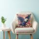 Cet oreiller à lancer est l'illustration d'un aigle américain avec des ailes écartées. Le modèle est une abstraction des étoiles et des rayures.