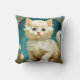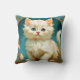 Coussin avec un chat blanc dans le style Art Nouveau d'Alphonse Mucha ! Un chat blanc et moelleux regarde le spectateur avec un regard large sur un fond bleu. Un grand cadeau pour les amoureux de les chats et les collectionneurs Art Nouveau !