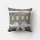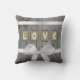Coussin AMOUR cousu sur tissu brun clair
