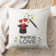 Une illustration d'une baguette magique qui fait des coeurs rouges est sortie d'un chapeau haut avec la citation "Amour magique". Vous rêvez d'être un magicien, un magicien ou un illusionniste ? Un sort d'amour à l'esprit ? Célébrez votre anniversaire, la Saint-Valentin et l'amour avec vos proches plus romantique et spécial.