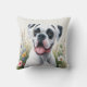 Coussin Amusant chien de boxe blanc dans les fleurs