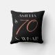 Amusant et simple Noir Coussin 70e anniversaire. Coussin noir et élégant de 70e anniversaire avec une citation drôle, positive et motivationnelle 70 Alors quoi. Un numéro d'âge est une typographie à la mode. L'arrière - plan est noir. Personnalisez le coussin avec un nom et changez tout le texte si vous le souhaitez. Grand cadeau d'anniversaire pour une femme ou un homme qui fête 70 ans et a un sens de l'humour.a