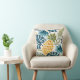 Coussin Ananas doré bleu palmier feuille feuillage blanc