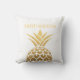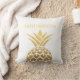 Ananas en or glittery élégant et tendance sur décorateur blanc jetez un oreiller personnalisé avec votre nom de famille.