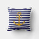 Coussin Ancre d'or nautique sur Bleu & Blanc rayé