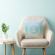 Une ancre blanche dans un mandala sur un arrière - plan abstrait qui ressemble à une plage et à l'océan. Coussin artistique décoratif pour votre maison, chalet côtier ou hôtel de plage.