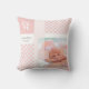 Célébrez la naissance de votre nouveau-né avec cet adorable coussin d'annonce de naissance à motif gingham rose et blanc, conçu pour mettre en valeur la première photo de votre bébé dans un style doux et chaleureux. La disposition présente des panneaux rose saumon, des accents blancs et un charmant motif à carreaux gingham rose qui crée une atmosphère cosy et prête pour la nurserie. Une paire d'empreintes de pieds de bébé blanches ajoute une touche sentimentale, tandis que la section personnalisable vous permet d'ajouter le nom et la date de naissance de votre bébé dans une élégante écriture. Parfait pour les nouveaux parents, les grands-parents ou comme souvenir de nurserie, ce coussin photo bébé personnalisé fait un beau cadeau et un souvenir précieux.
