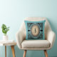 Coussin Antique Monogramme en dentelle Turquoise